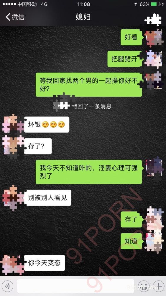 有一天在外地出差突然淫妻心理特别急切,所以就发生了下面的对话。见下图:
